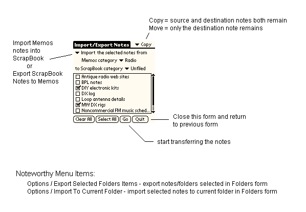 Import/Export Notes - Exchange notes between ScrapBook and Memos